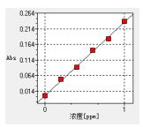 將2.2.1中的銅標(biāo)準(zhǔn)溶液,依次噴入火焰,測定吸光度,以吸光度為縱坐標(biāo),濃度為橫坐標(biāo),繪制標(biāo)準(zhǔn)曲線。波長324.7nm,光譜帶寬0.2nm,濾波系數(shù)0.3,燈電流3.0mA。